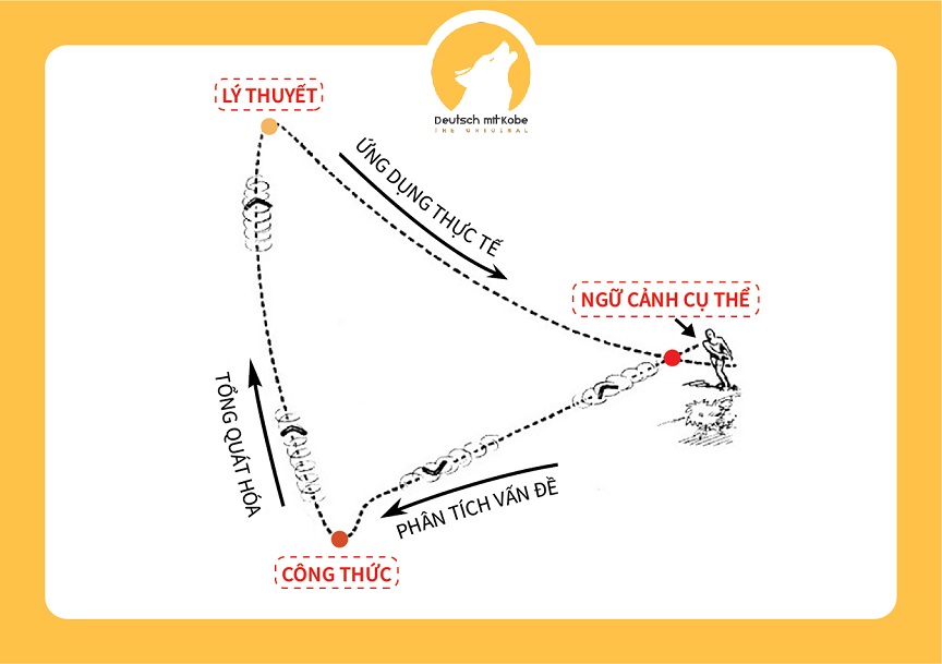 Là một người đã thực sự tự học từ con số 0, tôi hiểu rất rõ tất cả những vấn đề mà người học gặp phải cũng như những bước mà họ thấy khó khăn, một điều mà có lẽ không người Đức nào trải qua, và do vậy, càng không thể thấu hiểu. Do đó, tôi đề xuất phương pháp giảng dạy lấy cảm hứng từ chiếc Boomerang, thứ vũ khí có đường đi là một hình tròn, cụ thể các bước như sau: